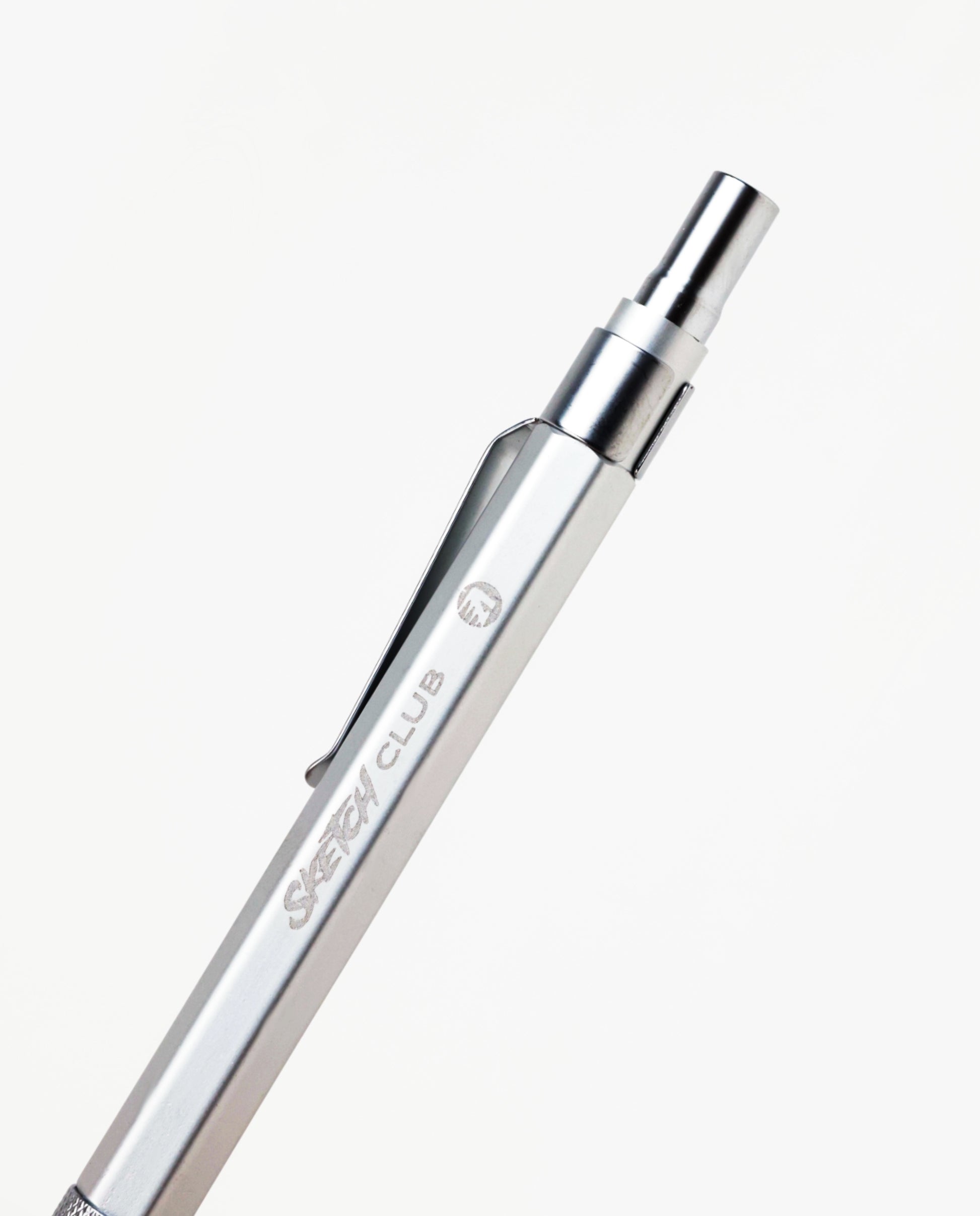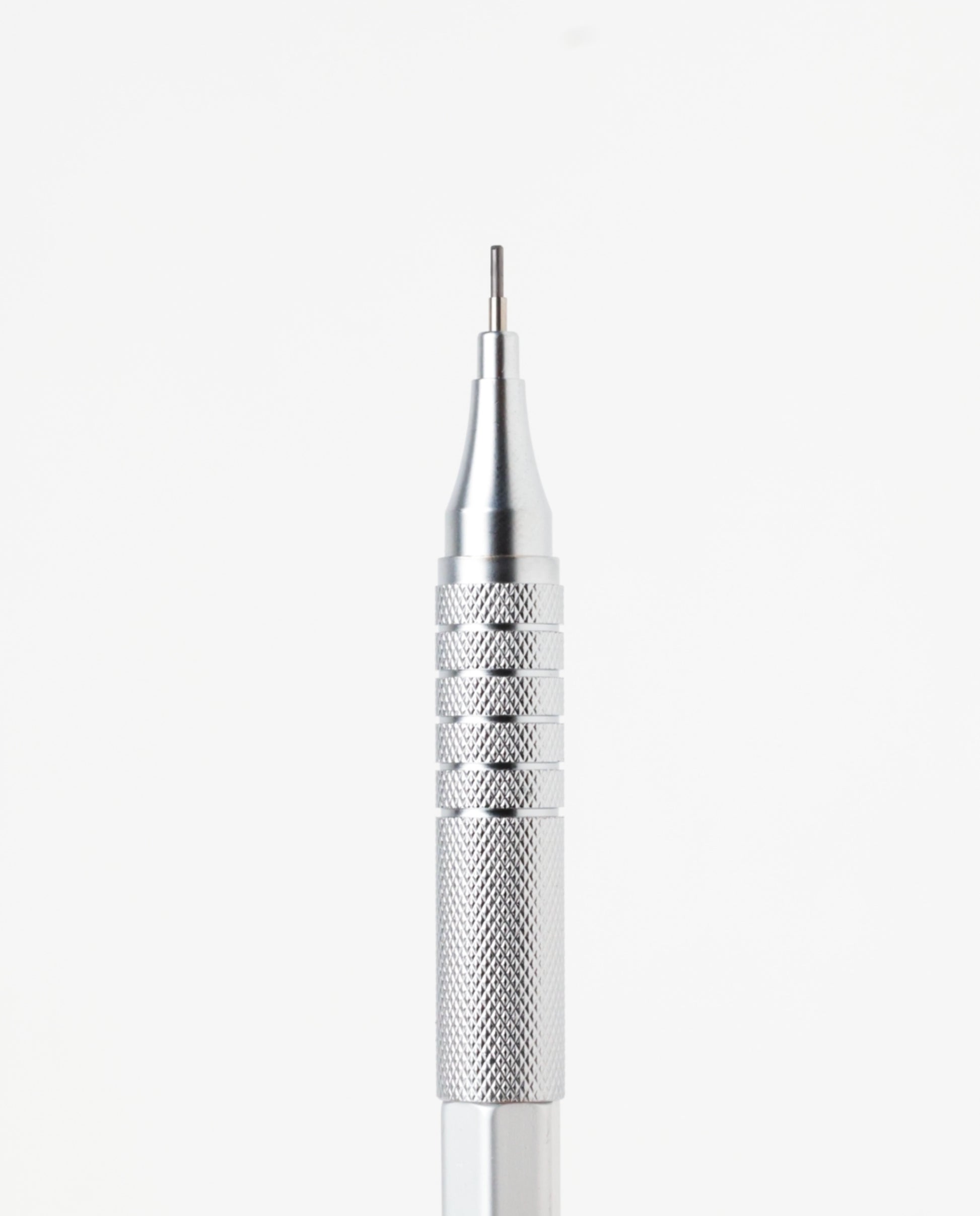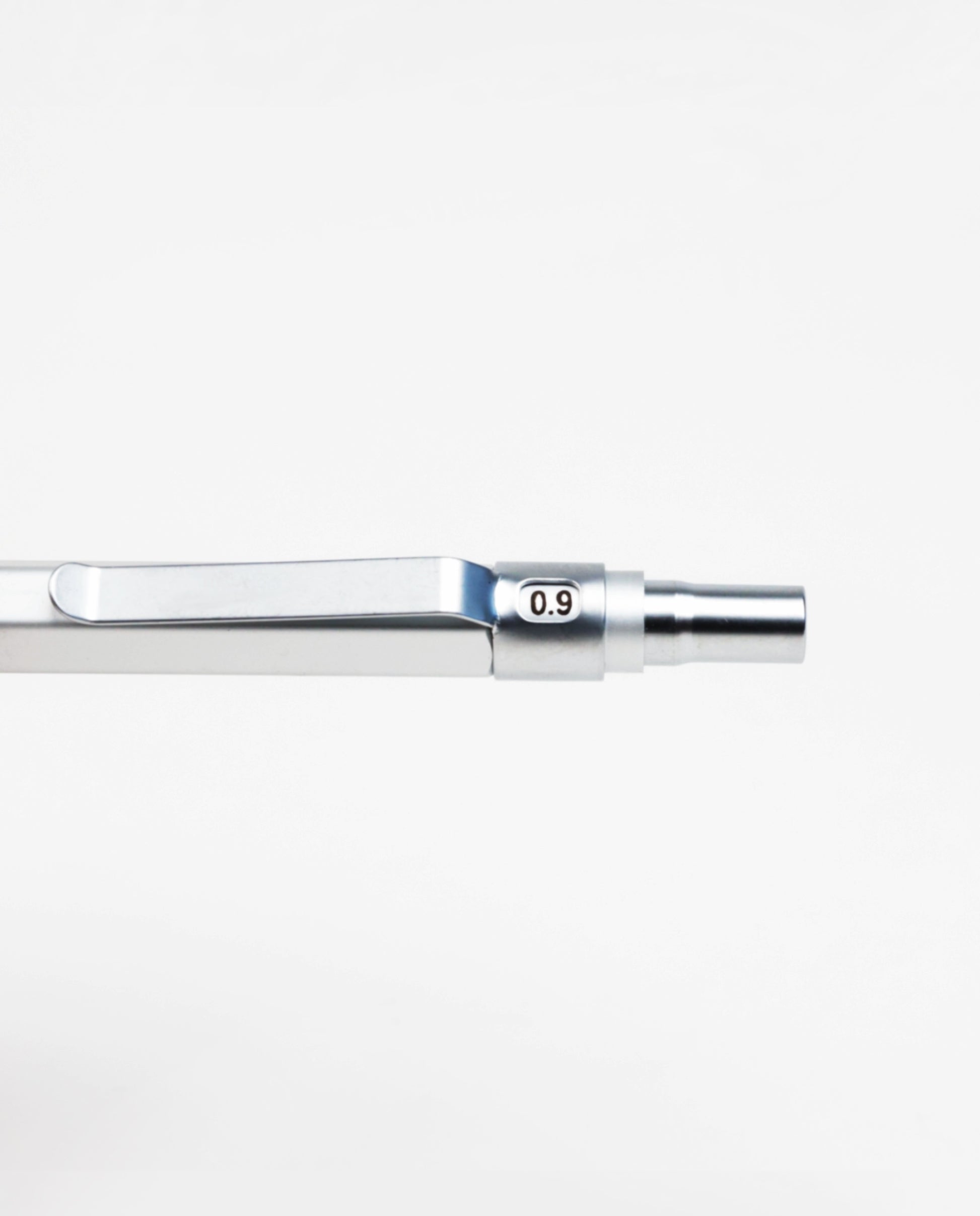 Mechanical drafting pencil, 0.9mm, HB, silver metal.